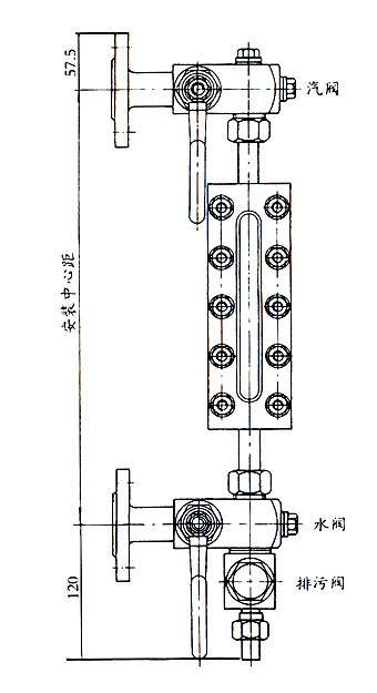儀表上、下兩端裝有法蘭與鍋爐或容器的法蘭連通,通過(guò)水位計(jì)可直接觀察到容器內(nèi)液汽的實(shí)際高度