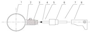 1、探頭 2、球閥底座 3、球閥 4、導(dǎo)向螺紋 5、緊鎖螺母 6、接線盒 7、信號電纜 |