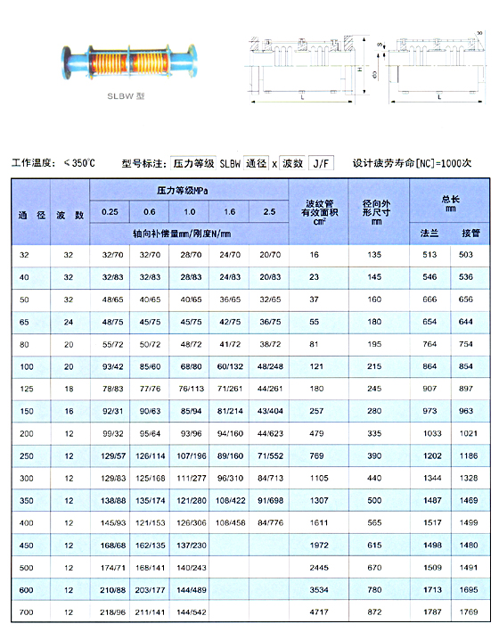 SLBW復(fù)式拉桿軸向型波紋補(bǔ)償器,外壓式波紋補(bǔ)償器型號(hào):SLBW位移方向:軸向工作壓力:(MPa)0.25、0.6、1.0、1.6、2.5公稱(chēng)通徑:DN100-DN2000該膨脹節(jié)的波紋管二端與外筒、內(nèi)筒相連接,波紋管受外壓作用,波數(shù)較多,因此它能吸收較大的軸向位移。【產(chǎn)品說(shuō)明書(shū)】暫無(wú)產(chǎn)品參數(shù)其它參數(shù)特點(diǎn)該膨脹節(jié)的波紋管二端與外筒、內(nèi)筒相連接,工作壓力0.25、0.6、1.0、1.6、2.5mPa公稱(chēng)通徑DN100-DN2000mm執(zhí)行標(biāo)準(zhǔn)位移方向:軸向