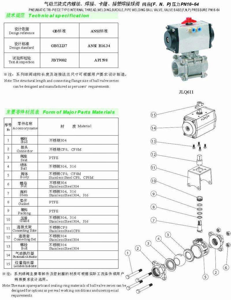 JLQ6氣動三塊式內(nèi)螺紋/焊接/卡箍/接管焊接球閥是我公司的優(yōu)質(zhì)產(chǎn)品之一,在上海JLQ6氣動三塊式內(nèi)螺紋/焊接/卡箍/接管焊接球閥廠家中享有極高的品質(zhì)聲譽與服務評價.