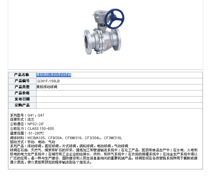 美標渦輪傳動浮動球閥是我公司的優質產品之一,在上海美標渦輪傳動浮動球閥廠家中享有極高的品質聲譽與服務評價.