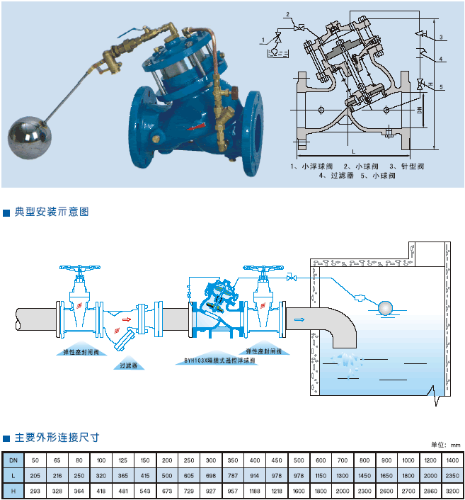 BYH103X活塞式遙控浮球伐是兼具多種功能的水力操作式閥門。主要安裝于水池或高架水塔的進(jìn)水口處,當(dāng)水位達(dá)到設(shè)定的高度時,主閥由浮球?qū)чy控制關(guān)閉進(jìn)水口停止供水;當(dāng)水位下降后主閥由浮球?qū)чy控制打開進(jìn)水口向水池主水,實現(xiàn)自動補水。液位控制精確,活塞式遙控浮球閥可隨水池的高度及使用空間任意位置安裝,維護、調(diào)試、檢查方便、密封可靠,使用壽命長。活塞式閥門性能可靠、強度高、動作平穩(wěn)適用于600口徑以下的管道。 |