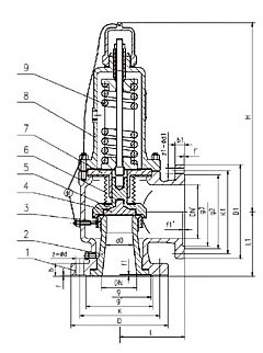 本閥門適用于工作溫度≤200℃存在不穩定背壓或有毒、腐蝕性介質的設備或管路上,作為超壓保護裝置。連接法蘭標準≤4MPa采用JB/T6……94系列1。>4MPa采用JB/T……94系列2標準。